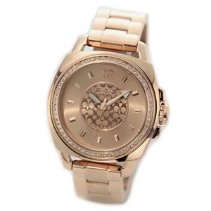 【レディス腕時計】Coach(コーチ) シグネチャーインデックス&キラキラ ラインストーンベゼルのレディス・ピンクゴールド・ブレス・ウオッチ 14501387