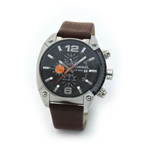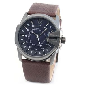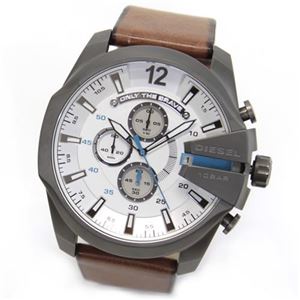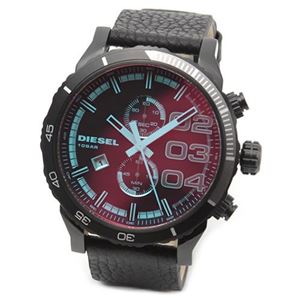 DIESEL(ディーゼル) ライトサイドのプロテクター、コクピット・フェイクなフェイスで超人気。大きめサイズのレザーストラップ・ウオッチ DZ1618