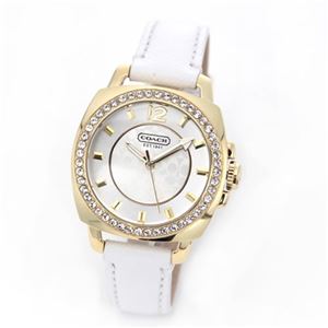 【レディス腕時計】Coach(コーチ) ダイヤルにはシェルの輝きとラインストーン☆ラインストーンをまとったラグジュアリーなレディス・レザーストラップ・ウオッチ 14501899
